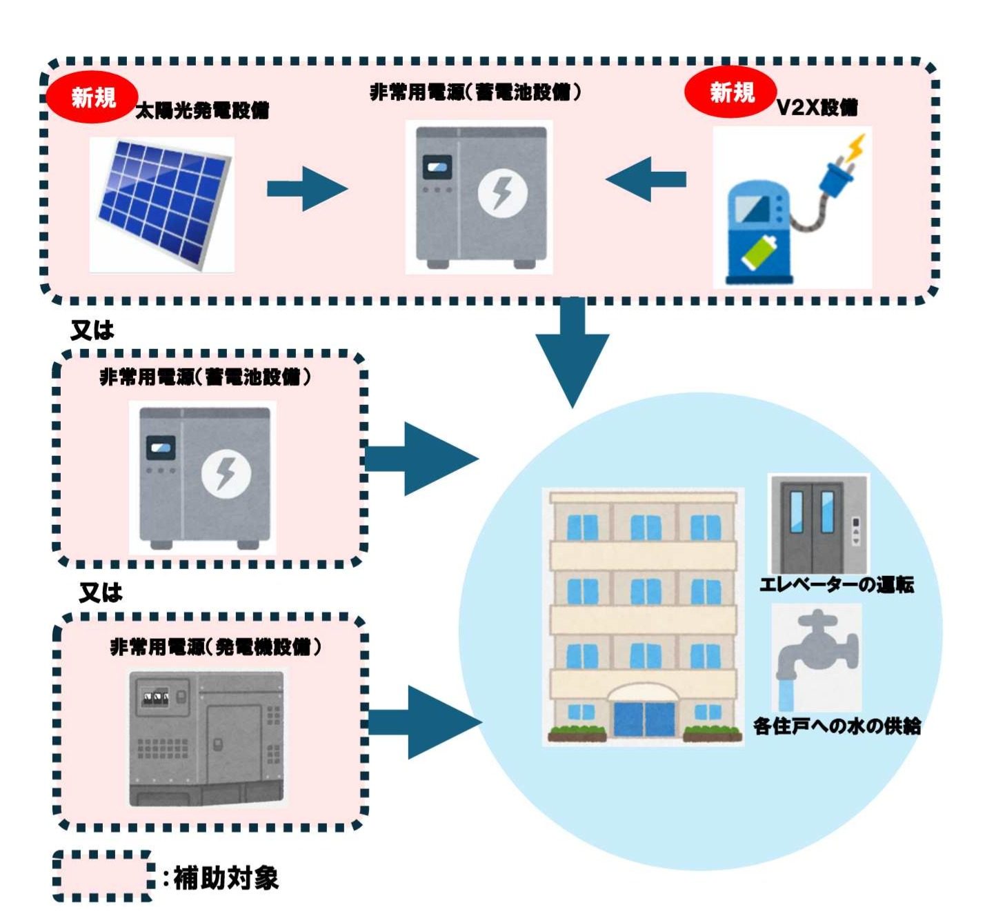 東京都の一例:「非常用電源・太陽光発電設備及びV2X設備導入促進事業」